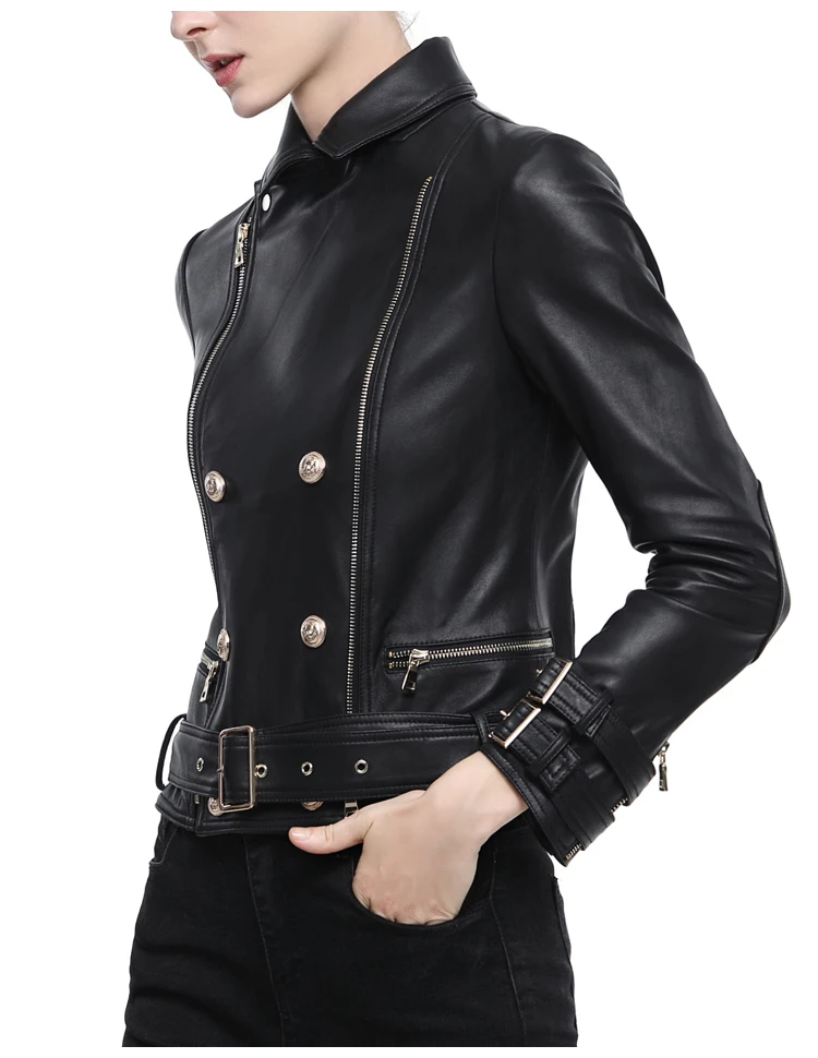 Best Price Woman Coats High-Quality 100% Sheepskin Leather Jackets Motorcycle Leather Clothing Female Real She
